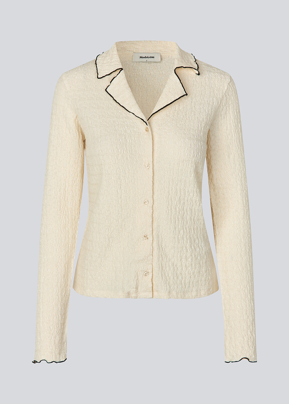 Shirt in a light and elastic material. MesiMD shirt has long sleeves, a button closure in front and babylock edges. The model is 177 cm and wears a size S/36.