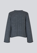 Loose blue knit with wide sleeves in cable knit. KurtisMD round neckline and rolled edges.