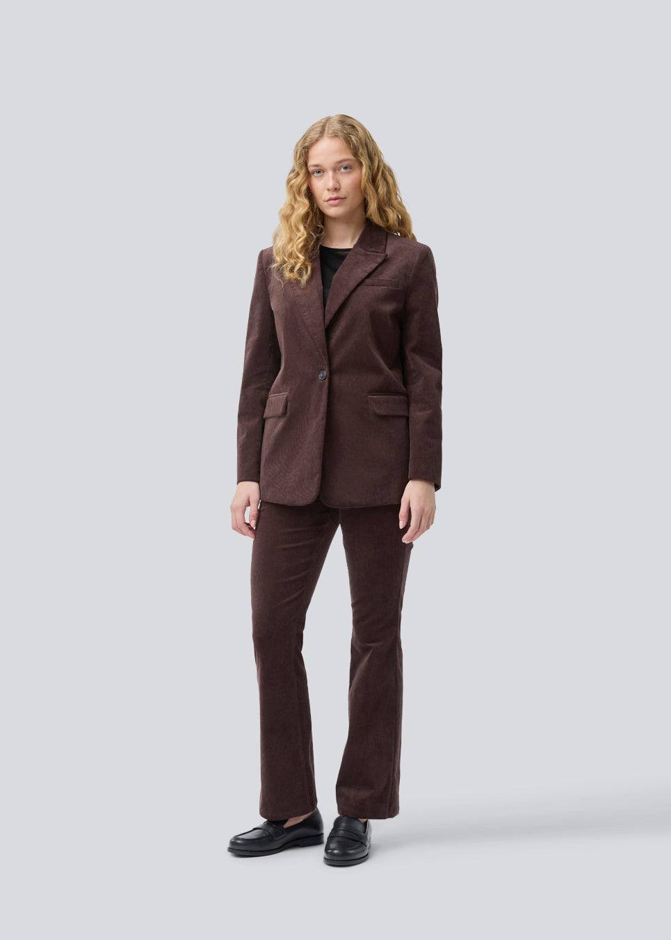 Blazer with a classic and elegant design in corduroy. Pablomd blazer has a button closure and two front pockets. The model is 175 cm and wears a size s/36.