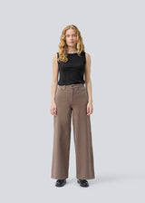 Wide-leg jeans in cotton denim. Princessmd pants have a high waist with elastic and front and back pockets. The model is 175 cm and wears a size S/36.