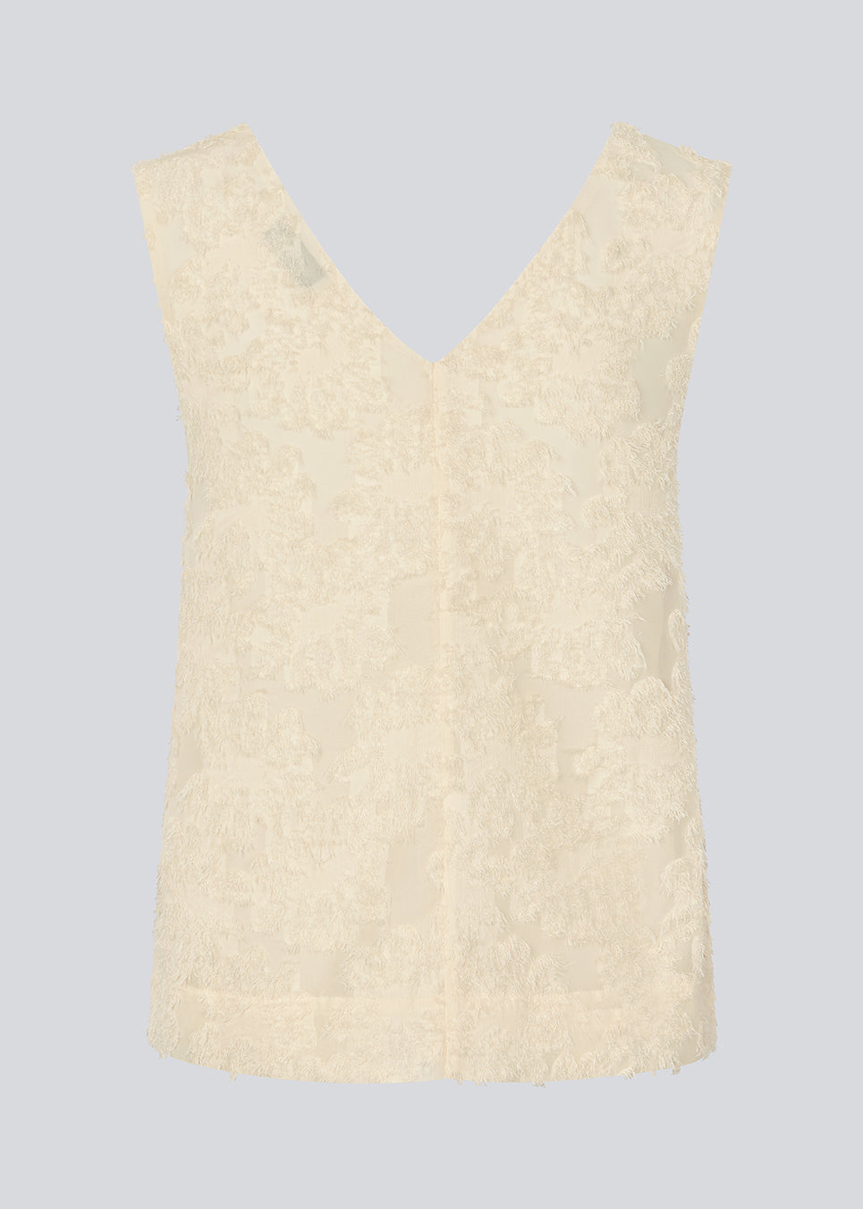 Sleeveless top in creme in a slightly see through material with lining. IvyMD top has a loose fit and a V-neckline.