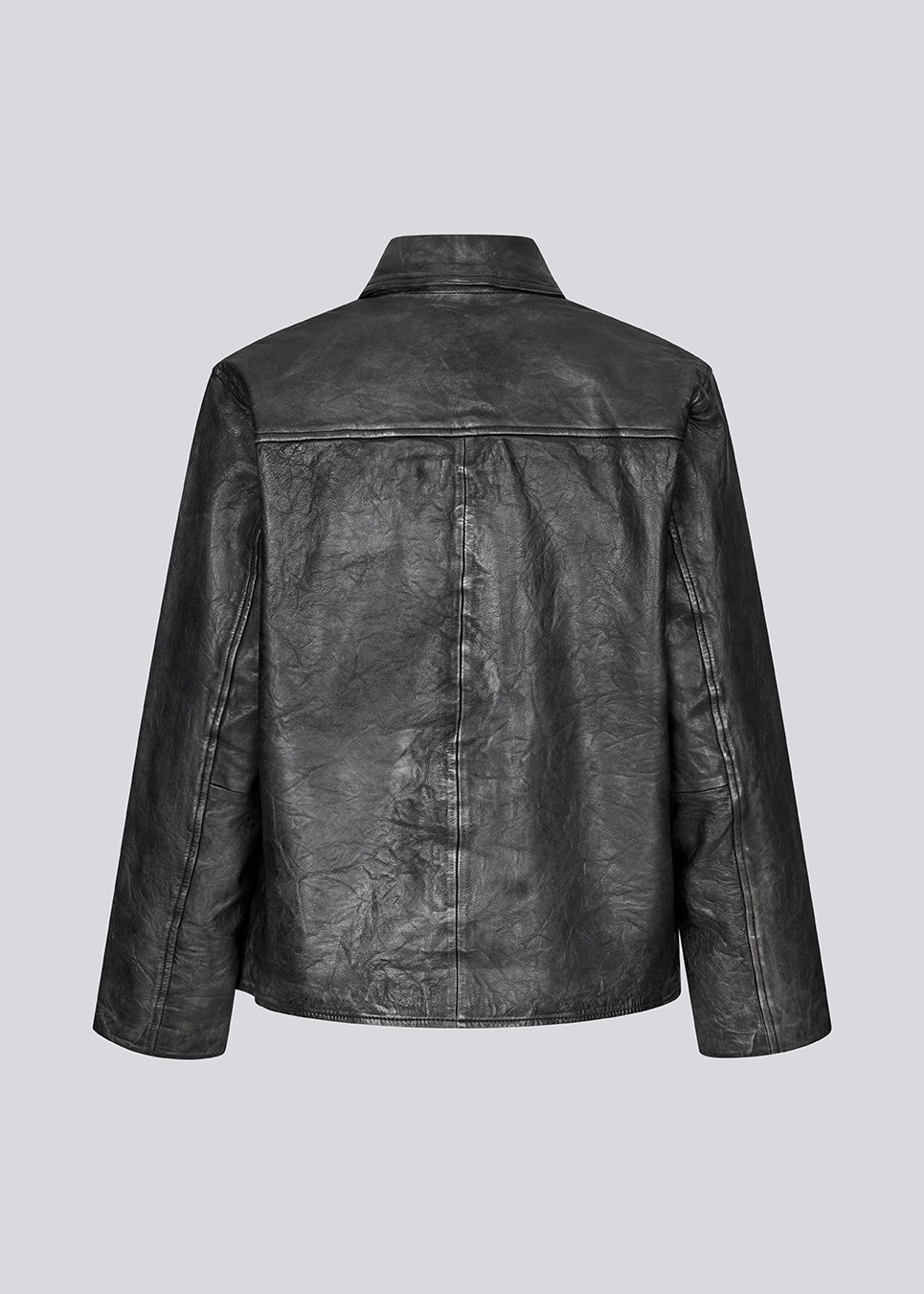 Pilot-inspired leather jacket with a vintage look in 100% lamb leather. JillMD jacket has a loose fit with wide sleeves, four pockets in front, collar and a zipper closure in front.