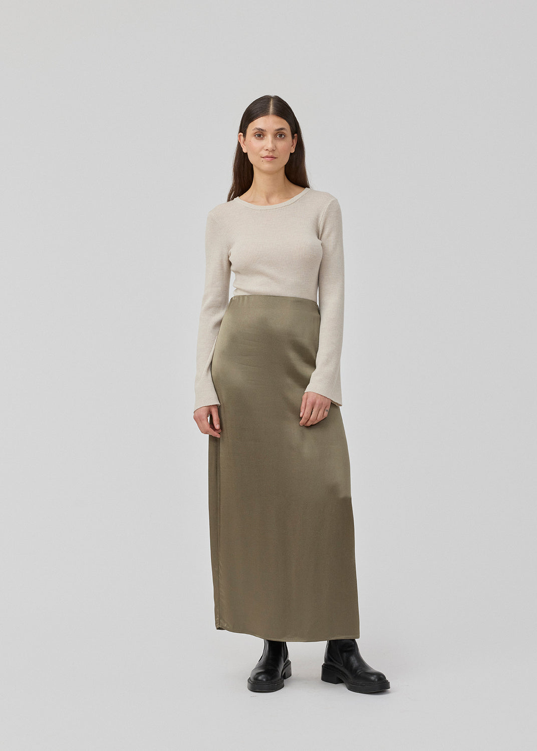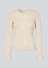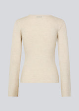 Fitted off white top made in a soft, rib-knitted wool. HirokiMD o-neck has long flared sleeves. The model is 175 and wears a size S/36.