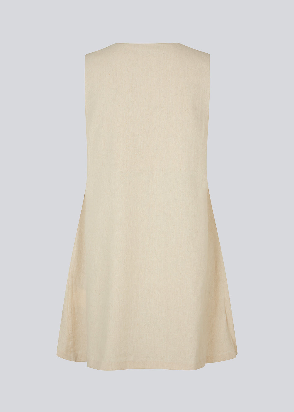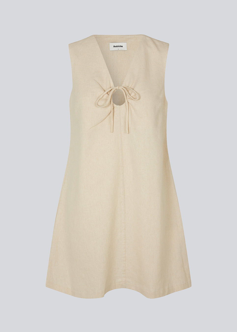 Short dress in a linen blend with an A-line silhouette. DaynaMD dress is sleveless, and features a deep v-neckline with cut out details and ties. The model is 177 cm and wears a size S/36.