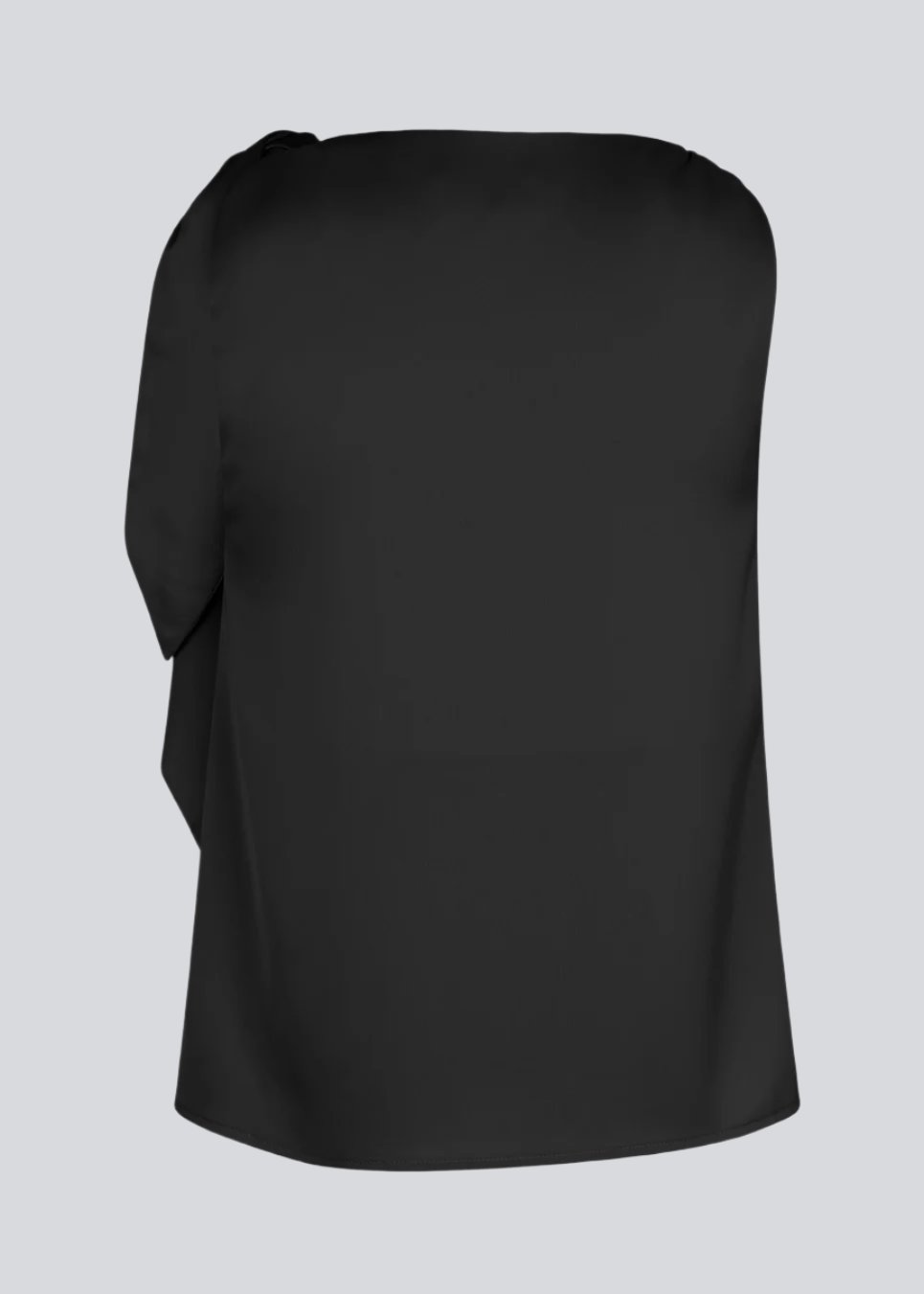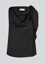 Black satin top with waterfall detail at the neck. Katja MD top has a tie detail at the shoulder and a relaxed fit. The model is 175 cm and wears a size S/36.