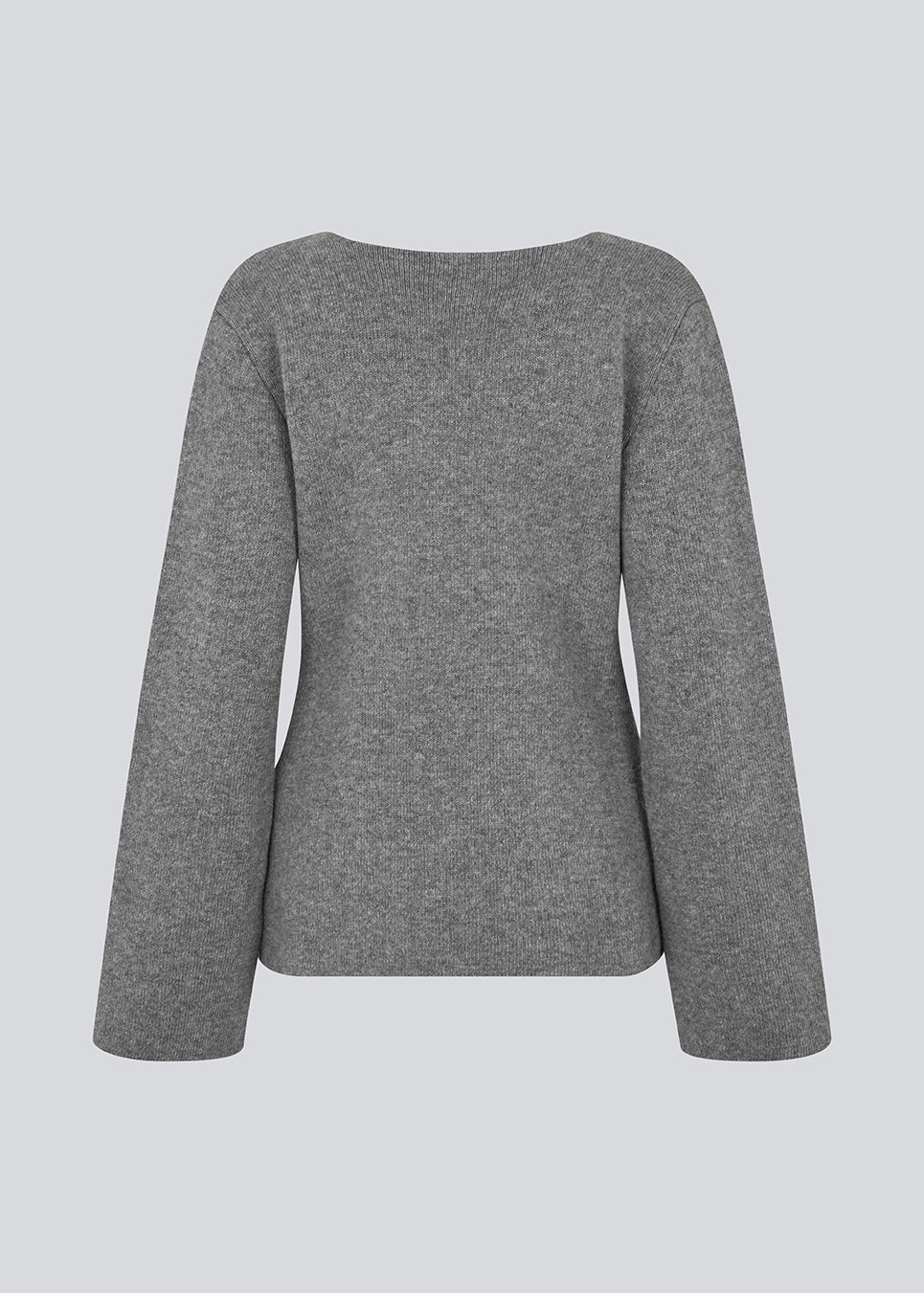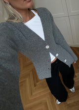 Flat knitted cardigan in grey with a V-neck in 100% wool. KlaytonMD cardigan is fitted and has long wide sleeves and buttons in the front.