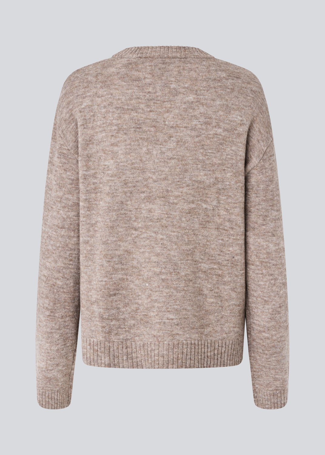 Loose knit in beige melange in plain jersey knit. TreeMD o-neck has a round neckline and long loose sleeves.