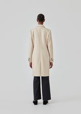 Beautiful, knee-length wool coat. Odelia coat, in season color Summer Sand, is closed at front by 4 buttons and is fitted around the waist, which gives a feminine look. Because of the high content of wool the jacket will be perfect for fall and the mild winters.